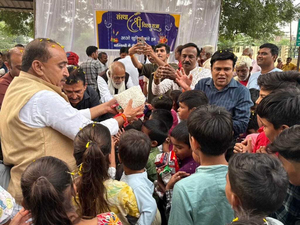 देवास। समाज में खुशियों का संदेश फैलाने और वंचित वर्ग के बच्चों के चेहरों पर मुस्कान लाने के उद्देश्य से संस्था श्री विश्व राजा द्वारा आओ खुशियाँ बाँटें हम अभियान के तहत दीपावली का पर्व सेवा बस्तियों में हर्षोल्लास के साथ मनाया गया। इस दौरान संस्था के पदाधिकारी, समाजसेवी एवं स्वयंसेवक शहर की विभिन्न सेवा बस्तियों में पहुँचे, जहाँ उन्होंने बच्चों के साथ दीपावली मनाई, मिठाइयां एवं पटाखे वितरित किए और दीप प्रज्वलित कर उजाला फैलाया। इस अवसर पर भारतीय जनता पार्टी के जिला अध्यक्ष राय सिंह सेंधव मुख्य अतिथि के रूप में उपस्थित रहे। उन्होंने संस्था के इस सामाजिक पहल की सराहना करते हुए कहा कि ऐसे कार्यक्रम समाज में मानवता, सहयोग और संवेदनशीलता की भावना को और अधिक सशक्त बनाते हैं।