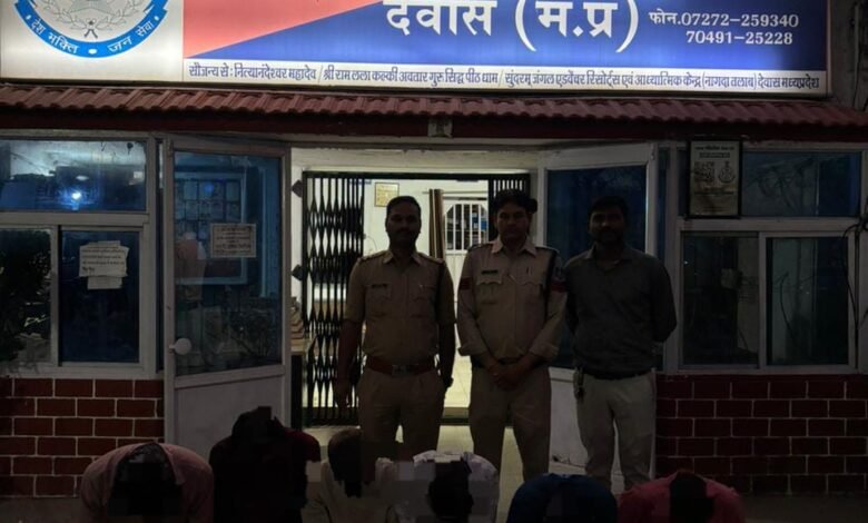 दरमियानी रात को थाना औद्योगिक क्षेत्र पुलिस को रात्रि गश्त के दौरान विश्वसनीय मुखबिर से सूचना प्राप्त हुई कि चूना खदान देवास पर कुछ व्यक्ति हार-जीत का दांव लगाकर मांग-पत्ती (ताश) का जुआ खेल रहे हैं । सूचना की गंभीरता को देखते हुए तत्काल वरिष्ठ अधिकारियो को अवगत कराया गया । पुलिस अधीक्षक देवास  पुनीत गेहलोद द्वारा मुखबिर द्वारा बताये गये स्थान पर दबिश देकर आरोपियो को गिरफ्तार कर सख्त कार्यवाही हेतू निर्देशित किया गया । जिस पर से अतिरिक्त पुलिस अधीक्षक (शहर)  जयवीर सिंह भदौरिया के मार्गदर्शन में नगर पुलिस अधीक्षक देवास  सुमित अग्रवाल के निर्देशन में थाना प्रभारी औद्योगिक क्षेत्र के नेतृत्व में 04 विशेष पुलिस टीमों का गठन कर मुखबिर द्वारा बताए गए दोनो स्थान पर दबिश दी गई,जहां कुछ व्यक्ति ताश की गड्डी पर रुपये का दांव लगाकर जुआ खेलते पाए गए । पुलिस को देखकर कुछ व्यक्ति मौके से भागने लगे जिन्हें घेराबंदी कर कुल 06 आरोपियों को गिरफ्तार कर आरोपियो के कब्जे से कुल ₹ 1,370/- नगद,02 ताश की गड्डी का मश्रुका जप्त कर आरोपियो के विरूद्ध थाना औद्योगिक क्षेत्र में अपराध क्रमांक 948/2025,949/2025 धारा 13 जुआ अधिनियम के अपराध पंजीबद्ध विवेचना में लिया जाकर अग्रिम वैधानिक कार्यवाही की जा रही है ।