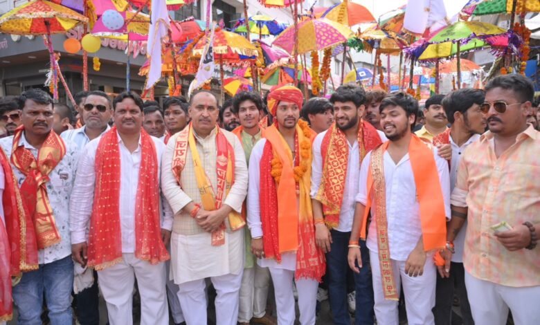 देवास। प्रतिवर्षानुसार इस वर्ष भी बागरी समाज द्वारा वीर तेजाजी जयंती के अवसर पर भव्य चल समारोह निकाला गया। चल समारोह शहर के प्रमुख मार्गों से होते हुए तेजाजी मंदिर पर पहुंचा जहां पर निशान चढ़ा कर पूजन अर्चन किया गया। चल समारोह में बाबु यादव प्रदेशाध्यक्ष बागरी युवा संघ , शुभम् यादव, जिलाध्यक्ष भाजपा रायसिह सेंघव ,धर्मेंद्र सिंह बैस पार्षद ,गणेश पटेल पार्षद, अजय पडियार पार्षद, लाखन सिंह राजपूत, विश्राम पवार, हुकम सिंह पंवार, शंकरलाल चौहान, परमानंद बागरी, संजय बोडाना, दीपक डाबी, नरेन्द्र बोडाने, रायसिह सोलंकी, राहुल यादव, सुनिल यादव, देवेंद्र गुजराती, जितेन्द्र यादव, अजय डाबी, संदीप यादव आदि सहित बडी संख्या में समाज जन उपस्थित रहे। चल समारोह का जगह जगह पुष्पवर्षा कर स्वागत किया गया।