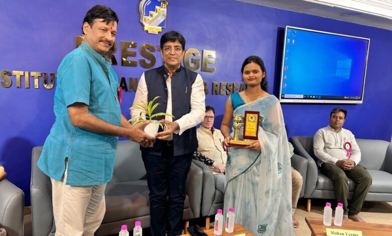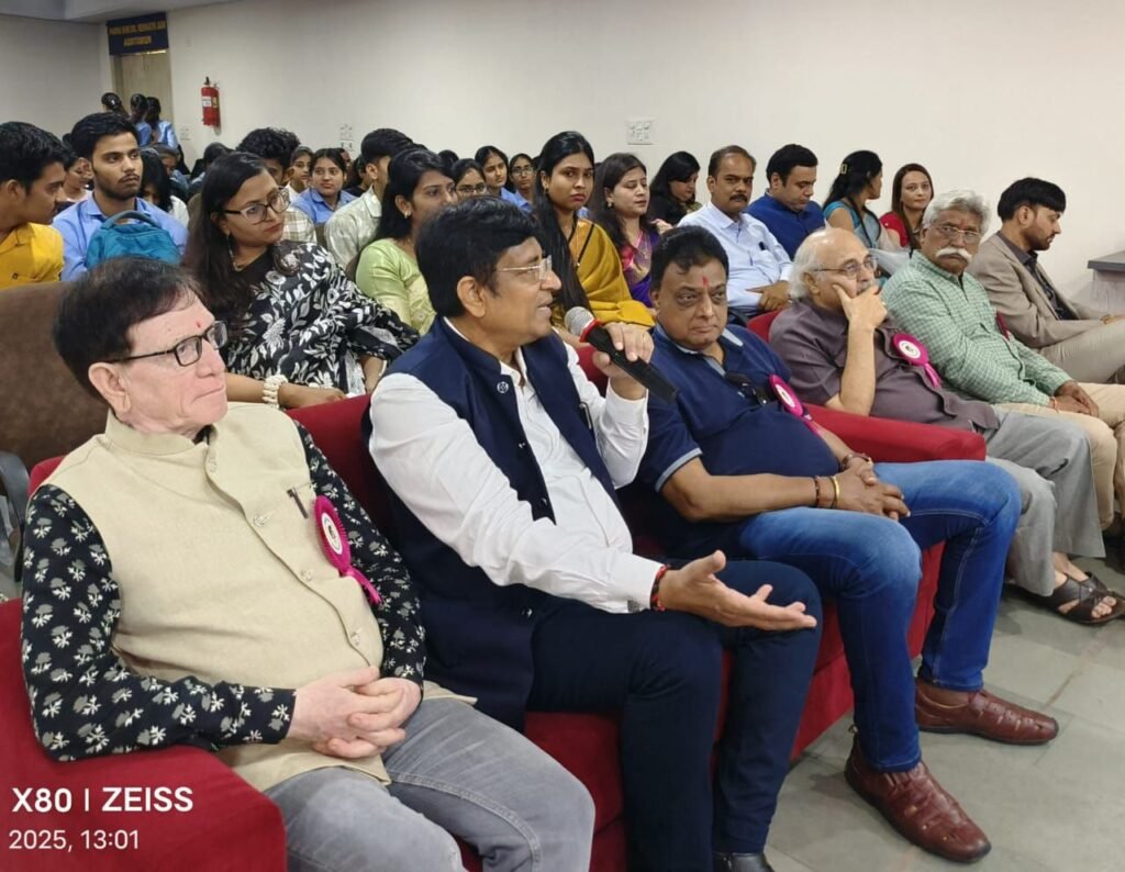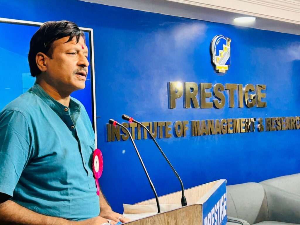 देवास। प्रेस्टीज इंस्टिट्यूट ऑफ मैनेजमेंट एंड रिसर्च, देवास द्वारा प्रसिद्ध अंतरराष्ट्रीय फिल्म एवं रंगमंच कलाकार चेतन पंडित के आतिथ्य में भारतीय सिनेमा एवं थियेटर विषय पर एक विशेष कार्यशाला का आयोजन किया गया। इस अवसर पर कला जगत से वरिष्ठ कलाकार एवं निर्देशक सुशील जौहरी, रंगकर्मी राकेश साहू, शेखर पाठक, पत्रकारिता क्षेत्र से वरिष्ठ पत्रकार मोहन वर्मा तथा चित्रकला क्षेत्र से जयप्रकाश चैहान उपस्थित रहे। संस्थान के विद्यार्थियों, संकाय सदस्यों एवं स्टाफ ने उत्साहपूर्वक भाग लिया। संस्थान के निदेशक प्रो. (डॉ.) आर. के. जैन ने अपने संबोधन में कहा कि कला और सिनेमा से जुड़े व्यक्तित्व अपने कार्य को साधना के रूप में करते हैं। यह कार्यशाला विद्यार्थियों के लिए नई विधाओं से परिचित होने का उत्कृष्ट माध्यम है