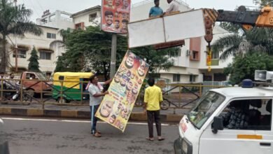 शहर की सुन्दरता मे बाधक बन रहे फ्लेक्स, बैनर्स को निगम की टीम ने हटाया